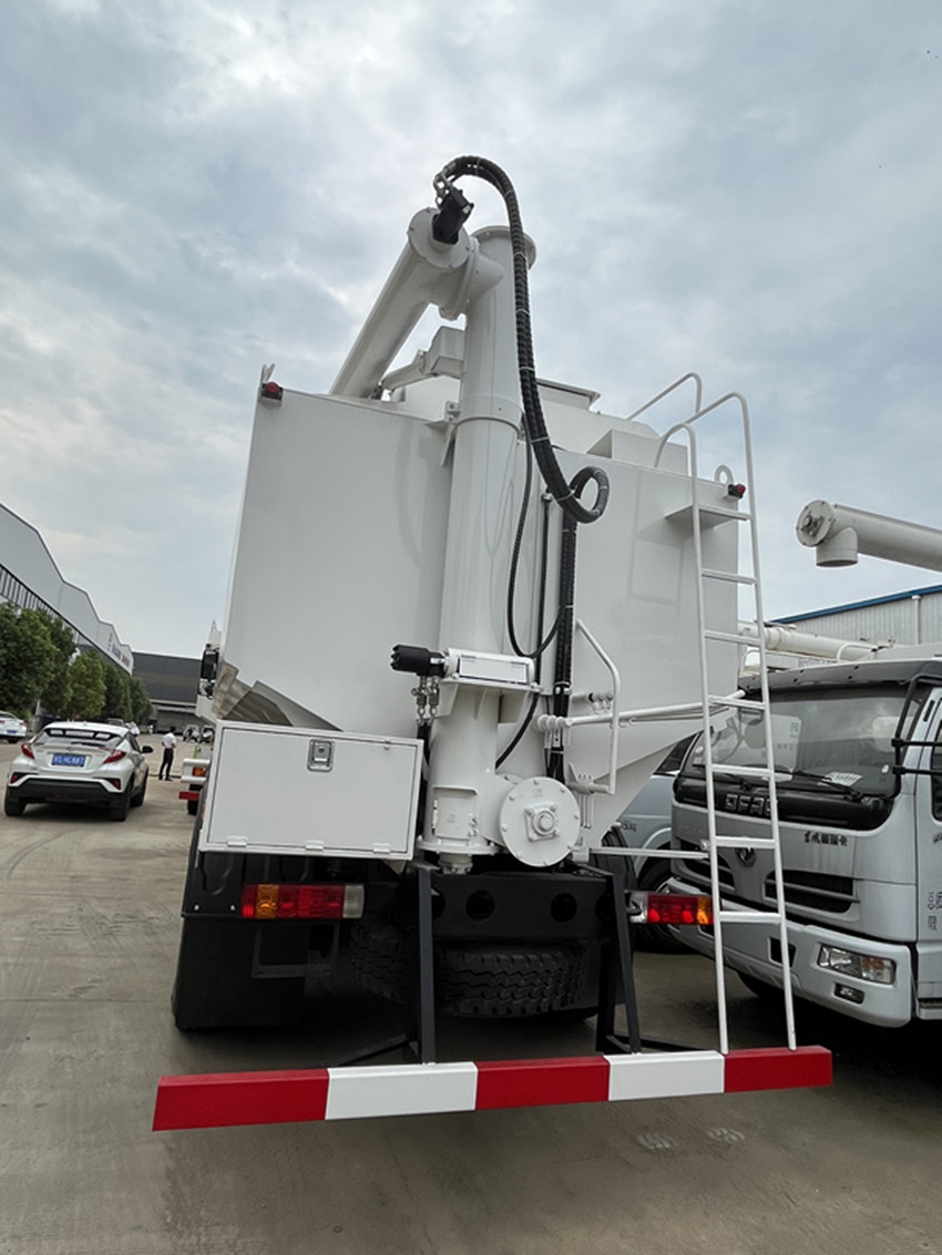 可獨(dú)立控制各分倉(cāng)卸料順序和速度,整車(chē)3條蛟龍(底部水平絞龍、尾部垂直絞龍、頂部卸料絞龍),由取力器經(jīng)車(chē)輛變速箱取力后,將動(dòng)力傳動(dòng)至高壓油泵以驅(qū)動(dòng)液壓系統(tǒng)帶動(dòng)各絞龍工作,或者由3個(gè)5.5kw 380v電機(jī)帶動(dòng)各絞龍工作,頂部絞龍液壓控制舉升,可左右旋轉(zhuǎn)180°此車(chē)公告+環(huán)保+燃油齊全,全國(guó)上戶無(wú)憂!