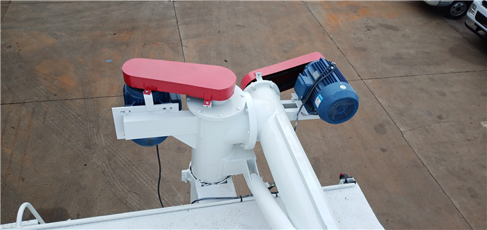 上裝罐體:罐體材質(zhì)采用4mm優(yōu)質(zhì)碳鋼板,整車3條絞龍,由3個(gè)5.5KW電機(jī)380V外接電源帶動(dòng)頂部絞龍用液壓控制舉升,可左右旋轉(zhuǎn)180°。罐體內(nèi)分為四個(gè)倉,可以獨(dú)立控制各分倉卸料順序和速度。(備注:此報(bào)價(jià)為標(biāo)配,國(guó)產(chǎn)電機(jī),德力西電柜)