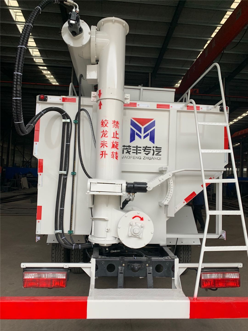 上裝罐體:罐體材質(zhì)采用4mm優(yōu)質(zhì)碳鋼板,整車3條絞龍,通過(guò)變速箱帶動(dòng)取力器取力后帶動(dòng)各絞龍工作,頂部絞龍用液壓控制舉升,可左右旋轉(zhuǎn)180°。罐體內(nèi)分為叁個(gè)倉(cāng),可以獨(dú)立控制各分倉(cāng)卸料順序和速度。(備注:此報(bào)價(jià)為標(biāo)配,國(guó)產(chǎn)電機(jī),德力西電柜)